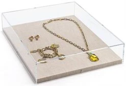 11 X 14 Wall Mounted Exhibit Case W/ Linen Backing, Acrylic Vitrine – Tan