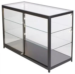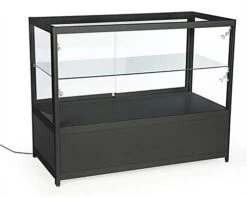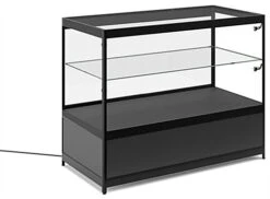 48″ Retail Display Case W/Cabinet, LED Side Lights, Slide Doors, Unassembled – Black