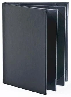 Menu Cover Holds (6) 8.5 X 11 Menus, Photo Album Corners, 4-Panel – Black
