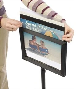 11 X 17 Sign Stand With Literature Pockets, 4″/8.5″w, Slide-In, Double-Sided – Black