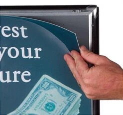 This sign stand adjusts in many ways for maximum flexibility and versatility. No additional tools are required to adjust the height or viewing angle. Each lobby display, sign stand features an adjustable height that can move up and down to a position that you choose. The print holder can be placed in the vertical or horizontal position, depending on the need. The sign stand frame also tilts a full 180 degrees to any desired viewing angle. Fully extend the height to use as a poster holder, or drop the height and tilt the frame back to use as a directory or menu display. Whichever way you decide to use it, this sign stand will look great in any indoor location.