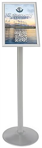 Designed with ease of use in mind, our display sign stand makes graphics changes a snap. Simply lift the sides, top and bottom of the frame, insert your graphic, sign, or poster under the protective non-glare cover and “snap” close.