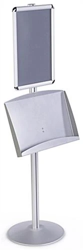 These sign holders allow you to change your advertisements in seconds. Featuring a snap open frame, these sign holders are designed to hold any 11″w x 17″h posters. We also supply these sign holders with an additional literature pocket to display pamphlets or magazines. Made from durable steel with a satin silver finish, these sign holders will last for years to come. These poster displays, sign holders are sure to look aesthetically pleasing in any environment. These sign holders, also known as poster displays, are great for use in high-traffic, indoor areas like lobbies, exhibition halls, car dealerships and retailers.