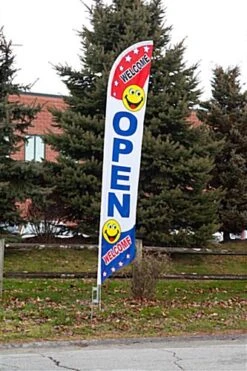 14′ Feather Flag & Ground Spike With WELCOME Message – Red, White & Blue