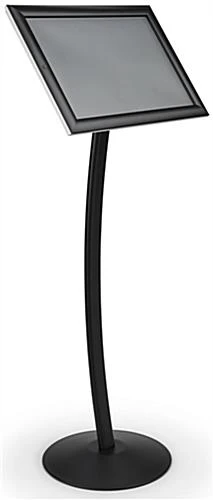 Complete your storefront display with floor stands meant to be curbside, like this outdoor sign pedestal. Designed for 17” x 11” posters, the UV-resistant PVC lens and interior weatherproof magnetic strip reassure crisp visibility and a tight seal. The locking snap frame sign pedestal allows for easy display updates. A sleek curved post, coupled with weather and rust resistant aluminum, ensures a durable unit to face the elements. Each poster holder provides a floor stand suitable to showcase menus, promotions, or event details. No longer will a poor forecast damper your business’s advertisement needs with this sign pedestal.