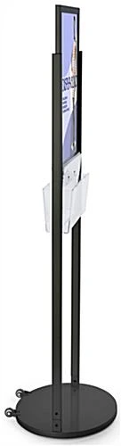 Introducing the black 18 x 24 wheeled poster display with 8 pamphlet pockets, this creative model is the textbook example for all your promotional needs! Coming in a glossy powder coated finish, this sign holder frames your graphics, prints, and more! With many optional choices for presenting leaflets, flyers, and circulars, the poster display comes with an acrylic brochure case that has interchangeable dividers giving you the selection of panel your materials require. When adding your photos or prints to the frame you can take advantage of a double-sided view feature with which the sign holder can showcase your prints from two angles. Also featuring a rolling base, the panel is a breeze to move around to compliment your promotional desires in any retail setting!