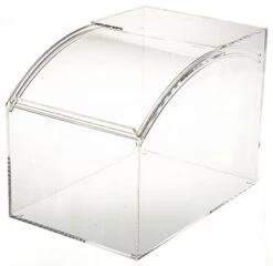 Each store fixture is designed to provide long lasting use and durability in retail settings. Candy displays that are acrylic ensure an investment in high quality merchandising units. Each bin is equipped with rubber feet that will not scratch surfaces when moved. These candy displays, also known as retail containers, feature an approximate 2 gallon capacity for holding a large amount of bulk items. This capacity is ideal for high traffic store locations because the bin will not require frequent replenishing. These retail jars, candy displays are multi-faceted and easy to use fixtures.