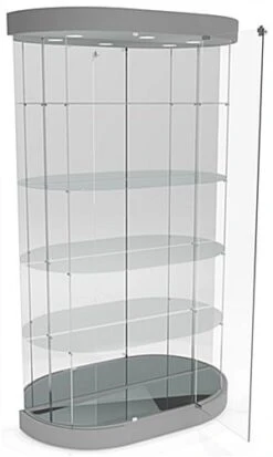 Oval Display Case with Four Hidden Casters and Tempered Glass Shelves