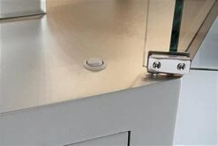 This display case for jewelry with LED lights stands 42″ in height, almost 4″ taller than a traditional cabinets. This allows patrons to peruse merchandise without having to bend over. Each quarter vision glass display case for jewelry with LED-lights features two sliding glass doors accessing the merchandising space. Once a customer has made their selection, merchants can easily access products by simply unlocking the glass doors and sliding them open. Each LED-lit display case for jewelry has adjustable foot levelers, which ensure that each counter will remain stable even on slightly uneven floor surfaces. Recessed toe kicks can also be found along the base of each showcase ensuring that any accidental scuffing will remain hidden from view. This LED-lit display case for jewelry with rear storage features a locking door in the back of the unit, which opens to reveal ample storage space for store merchandise, gift wrap, or other necessary items. The door to this space locks, so merchants can feel confident all items are secure.