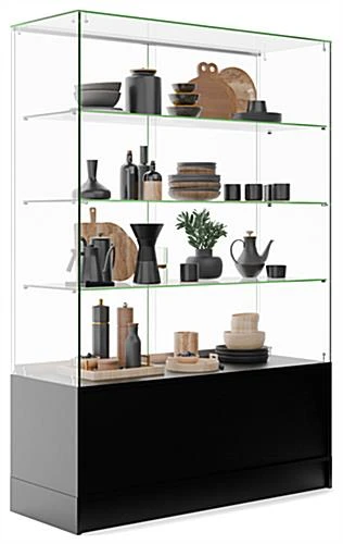 Merchandisers utilize the open design of this freestanding display case to increase product visibility in any retail environment. With a high-end, frameless, design this glass showcase features quality construction at an affordable price point. This frameless fixture maximizes exposure by enabling customers to view merchandise from all multiple angles without aluminum or wooden edges obscuring their view. Small aesthetic choices such as utilizing these freestanding display cases will improve the overall ambiance of any business. Retailers, schools, and various other businesses use these fixtures to showcase trophies, antiques, electronics, and high-end specialty products.