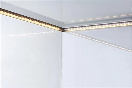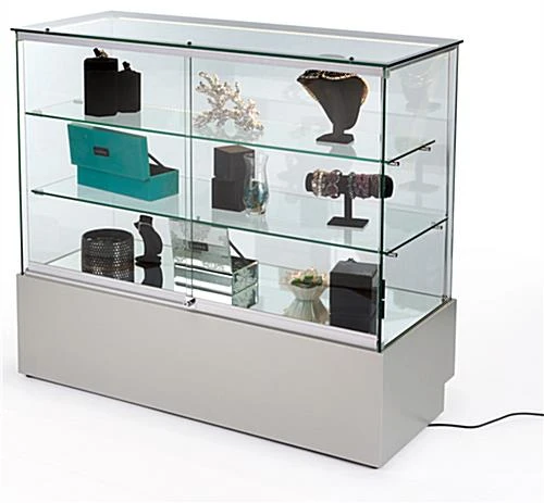 4ft. Glass Retail Counter W/ Mirror Deck, LED, Slider Doors, Ships Assembled, Silver