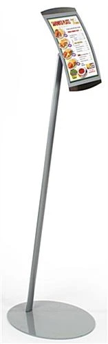This floor-standing magnetic sign display is a great sign holder for any lobby, entryway or trade show venue. The flip-open lens makes it easy for users to change out graphics at a moments notice. This magnetic sign display, also known as a print frame, stands over 4-1/2′ feet tall, a perfect eye-level height. This pedestal stand features a round base and single post that supports the poster holder. Use this magnetic sign display as a way to introduce your company to new clients. When placed strategically, this signage holder can be a very effective marketing fixture. This metal stand, magnetic sign display is also a means of announcing prices, such as at a hair salon, restaurant or spa. The multi-functional poster stand makes a huge first-impression on potential customers.
