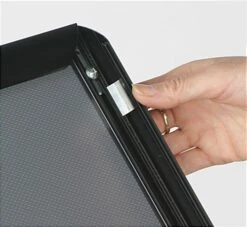 This sign holder accentuates any lobby with its contemporary look. This graphic stand, sign holder displays your graphics under a non-glare PVC lens.
