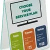 This freestanding sign holder for 8-1/2″ x 11″ prints is single sided for communicating with customers entering a lobby or queue line. These print stands have the clip frame design which is simple and fast to use. This floor standing display is a freestanding sign holder that can be used vertically or horizontally to accommodate all graphic designs. To rotate the advertisement display all that is needed is the included Philips head screwdriver. The whole process of rotating the frame on the freestanding sign holder takes (1) person less than five minutes. See below for the images and steps. This floor standing advertisement display has (4) rubber feet so the floor will not get scratched by the steel base. This pedestal print display is a freestanding sign holder that has a protective panel to keep the graphics safe from dust, fingerprints, creasing, and ripping. The plastic sheet is also anti-glare which is beneficial in any environment. Each freestanding sign holder is great for showcasing menus in a restaurant lobby or promotions in a retail store. The wave pole design on this floor standing ad display will stand out to patrons. This black aluminum freestanding sign holder, called a poster stand, is a neutral color that works in any dรฉcor. Pedestal ad stands do not take up a lot of space which is essential especially in small busy environments.