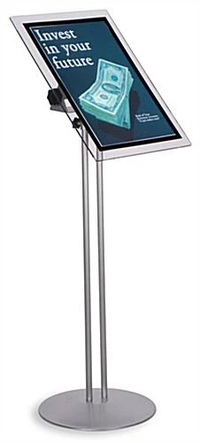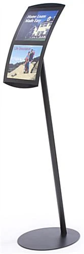 This photo holder is made of quality steel and features a black, powder-coated finish. The neutral tone easily coordinates with any environment. This photo holder, also known as a picture display, features a curved design for a more modernized appearance. This picture display, picture holder can be used to advertise promotions, notices, artwork, advertisements and menus. Retail stores typically use this sign frame to announce sales and other store policies. This photo holder is ideal for use in restaurants for displaying advertisements, or even in hotels to announce an upcoming event. The unique curved design will attract attention and force curious onlookers to stop and take notice. This photo holder is sure to add an upscale appearance to your graphics. The easy to maintain design of this sign frame makes it a popular choice among busy establishments.