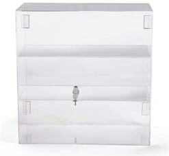 Acrylic Countertop Display Case W/ 2 Shelves & Hinged, Locking Door