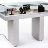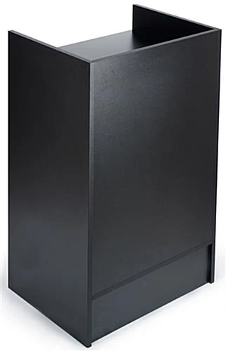 These cash wrap counters are an inexpensive option for retailers. The register stand, a display fixture, is made of melamine.