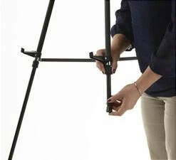 This is also a display easel that is height adjustable. The legs adjust by simply twisting the feet and extending to the desired height. The portable easel, similar to an art display tripod, features adjustable arms as well. These arms enable users to adjust the height of your displayed art canvas or presentation board. A portable display easel that is compact, such as the one seen here, can also be stored between uses. The space saving design is an ideal feature when utilized within an art studio. Each artist can then fold up the tripod and store until the easel is needed again. A low price point also makes this portable display ideal for use by various businesses and industries, including personal use!