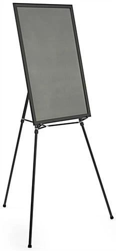 What makes an easel truly “portable”? Lightweight, space-saving, compact and movable are some characteristics to be considered. This particular collapsible display easel includes all of these features, and more.Each unit ships fully assembled, and is ready for use right out of the box, making it an easy choice to prepare for your next art gallery or trade show presentation! Unlike an artist tripod, for painting or art display purposes, this lightweight aluminum, collapsible display easel features a very basic design. When set up, the center portion can simply be lifted to collapse the entire unit. The studio canvas display, traveling portable easel can then be transported to and from events with ease! This particular design is ideal for tradeshow exhibitors, looking to display an ad to lead patrons to their booth. A collapsible display easel that collapses can also be used within office settings, for users to make presentations and display sales figures.