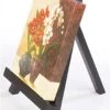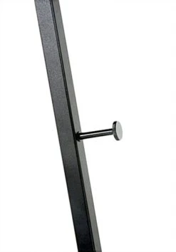 Each black floor standing folding easel includes five adjustable notches located on each side of the metal frame from 2″,12″,22″, 32″ and 42″ in height. The canvas holder includes two steel pegs with a lip to securely keep the display in place.