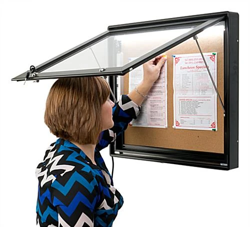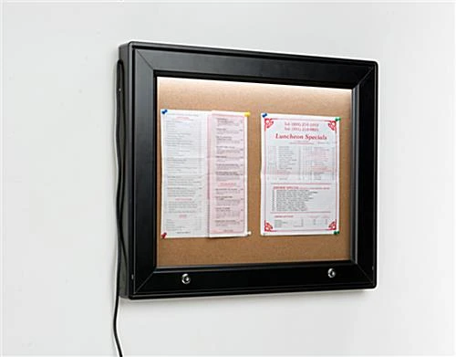 Each purchase of this waterproof LED menu corkboard that has a viewing window of 20” x 16” includes push pins for posting materials, wall mounting hardware and (2) sets of (2) keys for locking the cabinet to prevent unwanted tampering. Additionally, this all-weather bulletin board features energy-saving LED lighting along the top of the swinging door to illuminate the box 24 hours a day! Oftentimes, this waterproof LED menu corkboard, called a message board cabinet, is utilized by restaurants but is also ideal for exhibiting information for locations such as banks, churches, museums, colleges and more. This illuminated outdoor memo cabinet that is lockable is great for both indoor and outdoor use. Each waterproof LED menu corkboard that features a UV inhibitor polycarbonate cover prevents the lens from yellowing and also minimizes any damage to posters from sun exposure. Restaurant owners use this all season bulletin board designed for landscape orientation to display to-go selections or new cocktail options. A waterproof LED menu corkboard such as this outdoor display is easily accessible for frequent re-formatting of materials. Patrons and passersby will be instantly drawn to this elegant illuminated message board! This waterproof LED menu corkboard is a high quality outdoor display that has a proven reputation as an effective marketing tool!