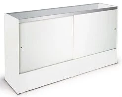 This 6’ white display case is constructed with melamine panels, aluminum extrusions, and tempered glass. Utilize these counter store fixtures for jewelry, collectibles, electronics, watch box series, or expensive items for additional protection. Manufactured to coordinate with compatible units also available at Displays2go, measuring 38” high and 18” deep this retail glass display case provides ample room to arrange and showcase merchandise. Neutral color panels frame merchandise effortlessly, allowing items to be the true focal point. Sliding rear doors provide maneuverability while organizing the merchandise on the (2) adjustable tempered glass shelves, whether it includes petite items such as jewelry or larger products like art sculptures. Streamline in appearance and durable in construction, these store fixtures are affordable and meant to last. Full vision open glass front design provides additional storage for high quality merchandise to be showcased within a display case.