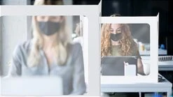 These student desktop privacy shields can help provide protection and define personal space in a shared or collaborative learning environment. Our barriers feature three-sided clear polyester windows allowing instructors full visibility while simultaneously fostering a sense of collaboration and participation. Social Distancing is essential within a school environment, and this student desktop privacy shield is a quick, easy, and portable way to achieve that goal. No assembly is necessary with this trifold design, which conveniently ships flat and folded.