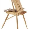 These wooden easels are great looking and versatile. The patented design allows users to fold the unit flat for efficient storage. The simple design of these wooden easels also enables a quick and effortless set-up. Simply spread the two legs apart, and the unit is ready for use. The durable hinges on these wooden easels have proven to withstand years of use and abuse. Adjustable wooden pegs provide the flexibility to position a display board or painting at several heights. There are (5) peg hole positions, located on each side of these wooden easels that are 10″ apart from each other, starting at the top of the easel, and one at 65″ from the top. The rubber feet on the bottom of the bi-fold stand keep the unit from moving, as well as marking delicate flooring.
